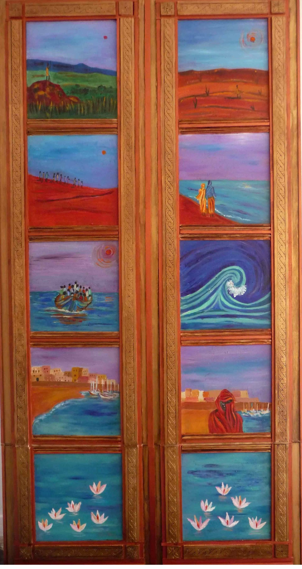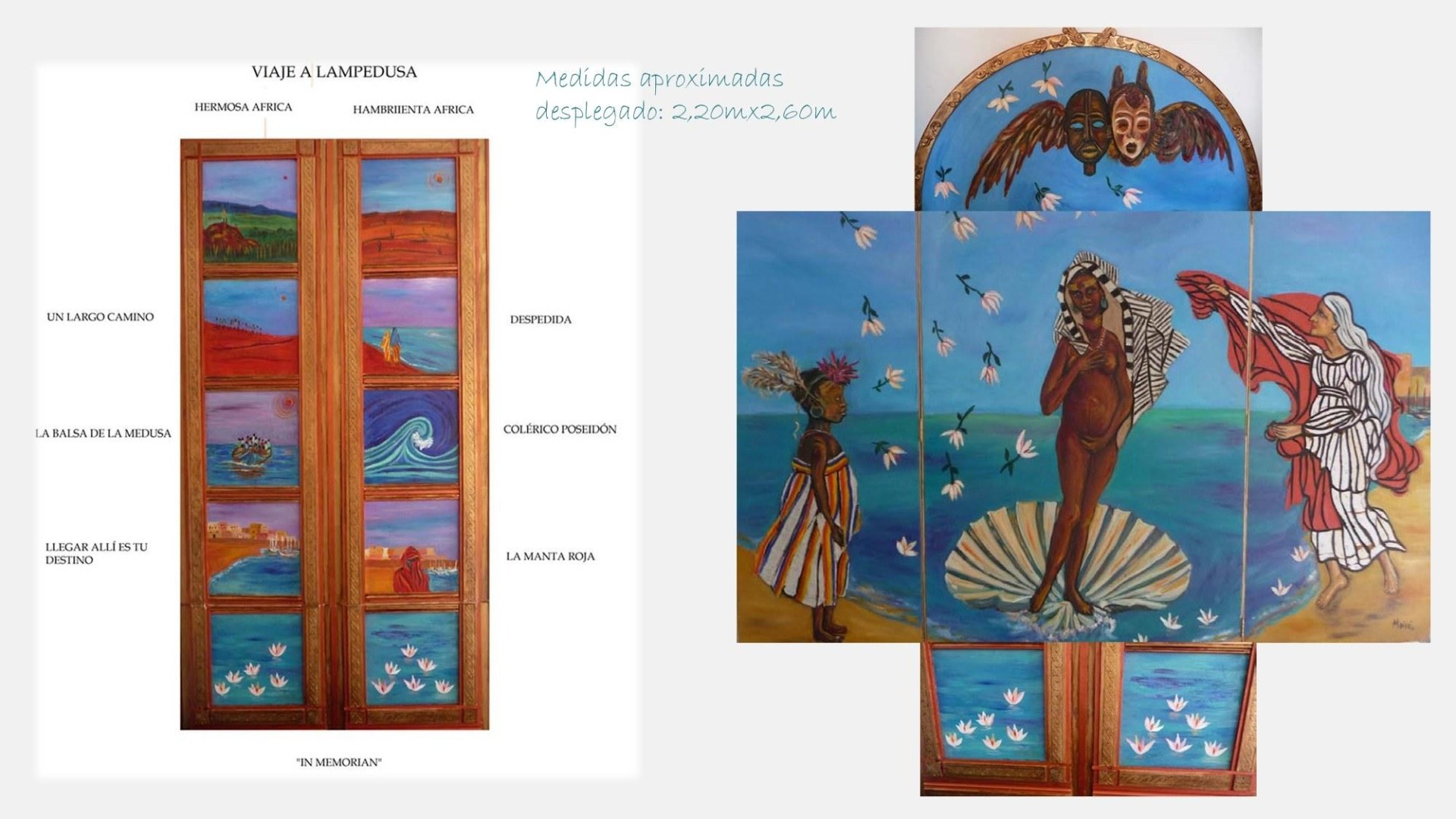 "Viaje a Lampedusa" tríptico, óleo sobre tabla