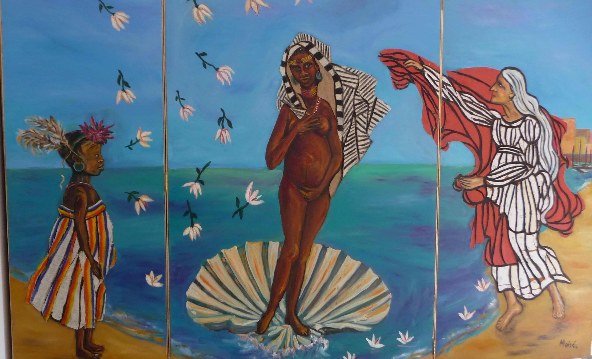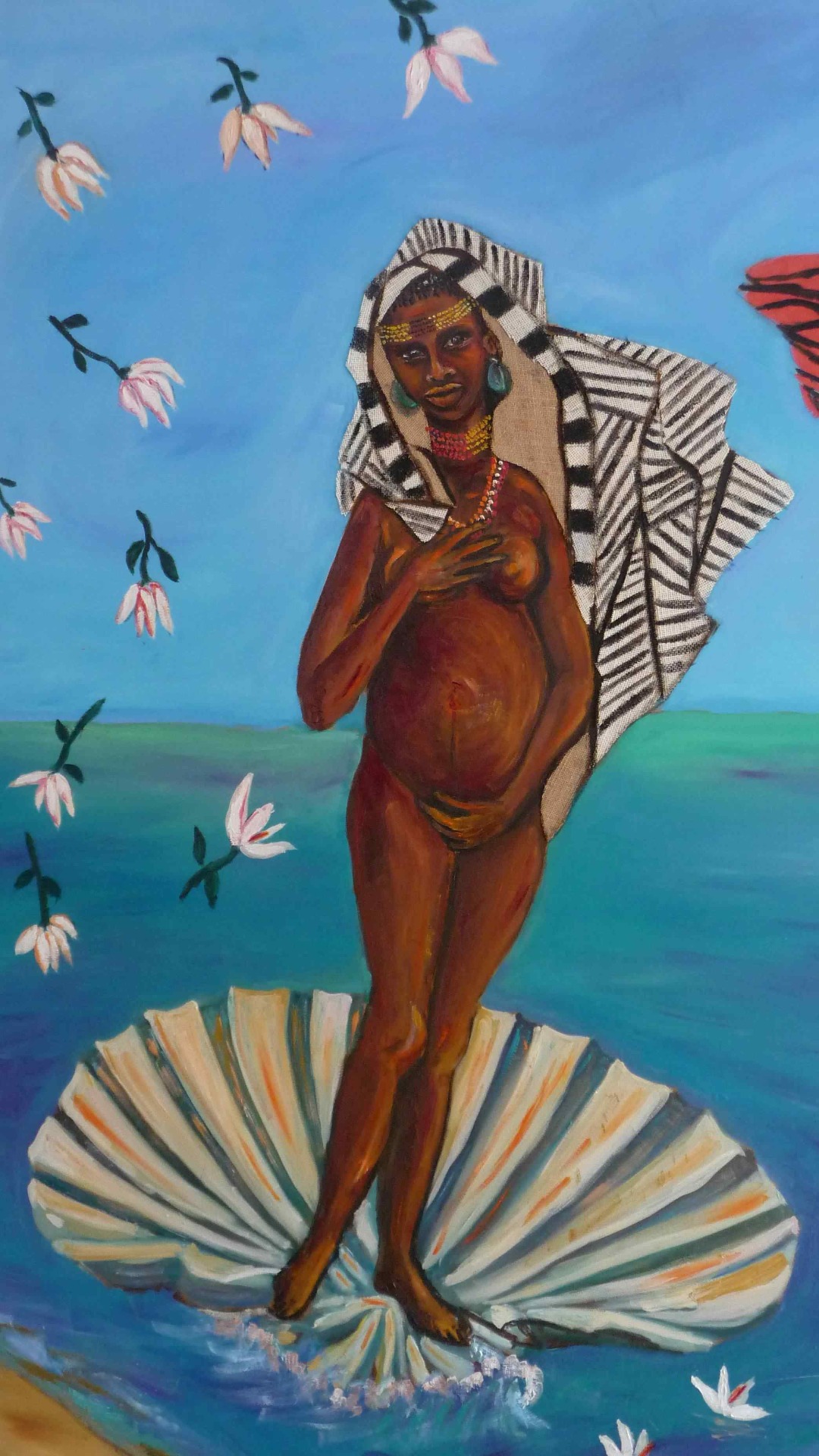 La Venus de Lampedusa, óleo y collage sobre tabla